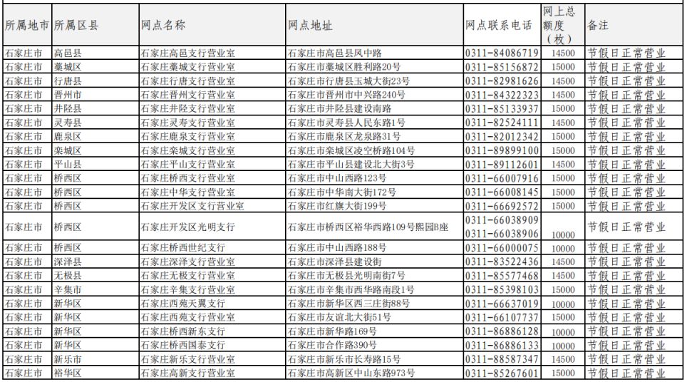 以下是中国工商银行石家庄网点预约详情及兑换额度一览: