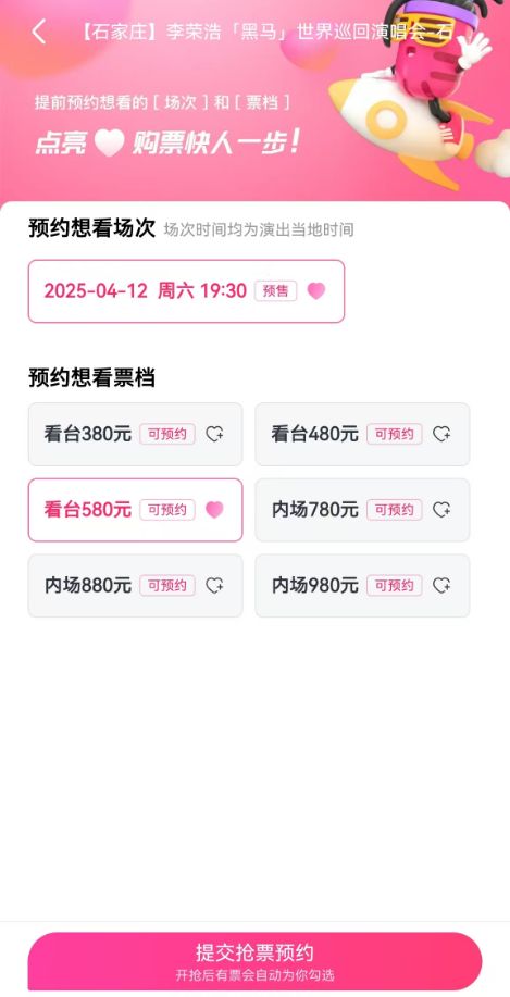 李荣浩石家庄演唱会可以选座吗?