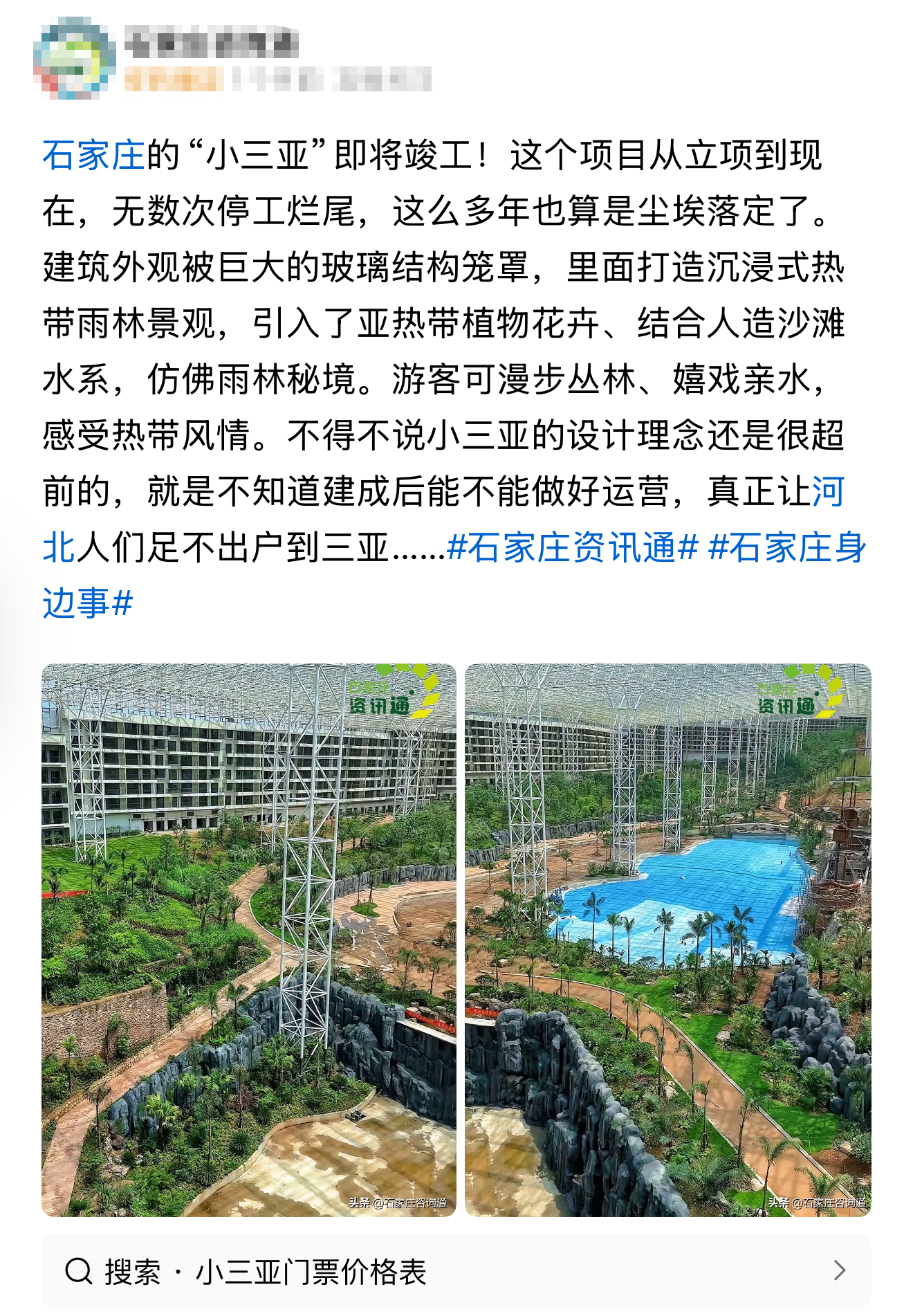 有网友发文称:石家庄的“小三亚”即将竣工!这个项目从立项到现在,无数次停工烂尾,这么多年也算是尘埃落定了。